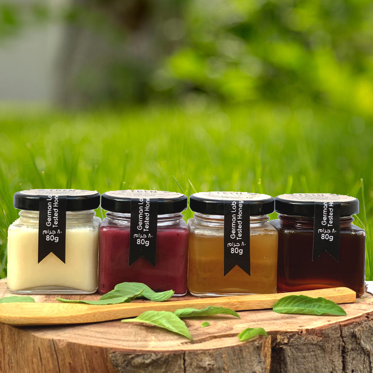 جرّب عبواتنا الأربعة الحصرية – اكتشف العسل الذي يناسب ذوقك